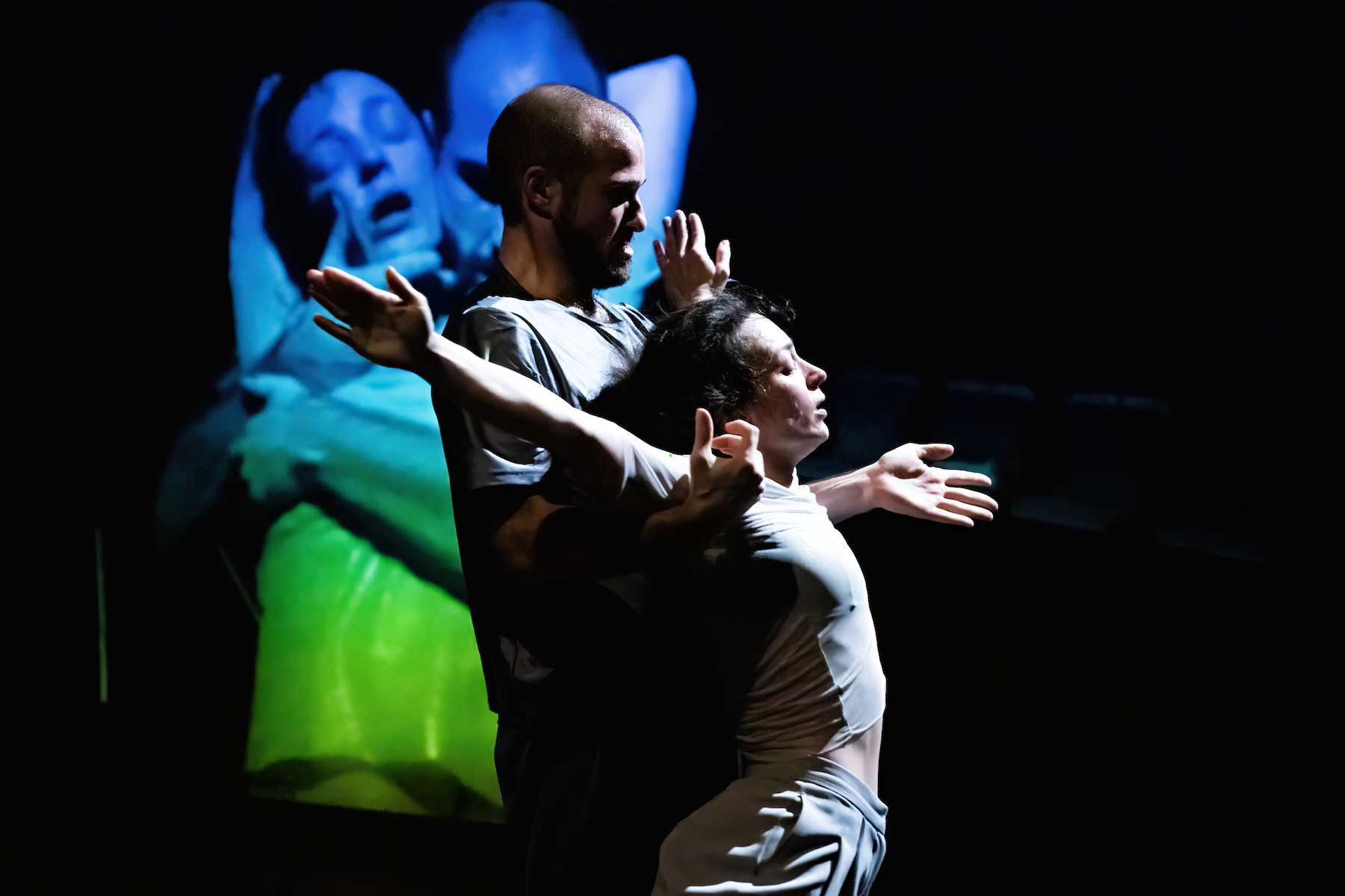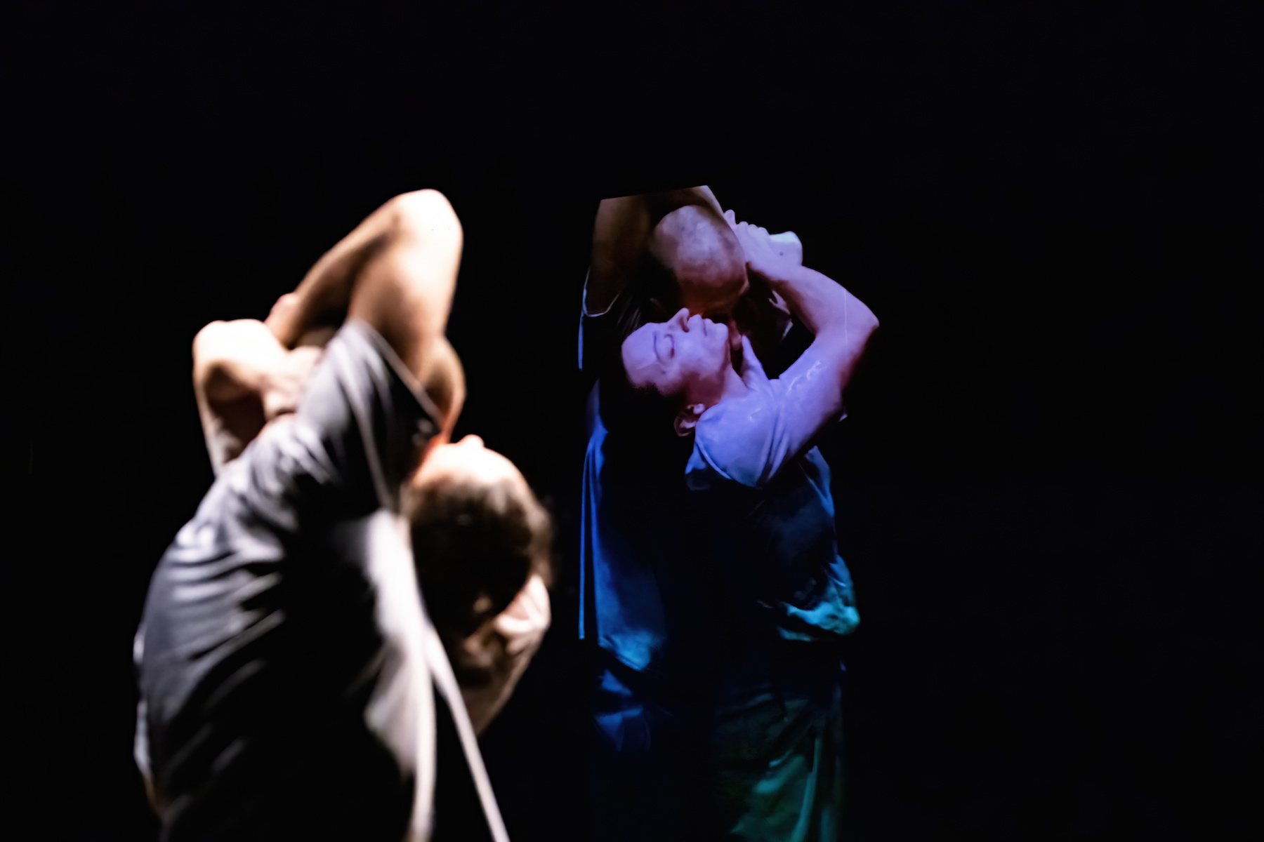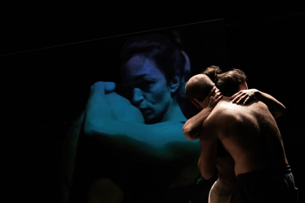 The gaze of the duo, the gaze of the cameras, the gaze of the spectator. And the play, as the essence of a relationship and of the very act of performaning arts. The play of possible combinations of reduced and re-expanded elements. The central point between the body and the two-dimensional image is the play of opposites between pleasure and violence, coexistence and alienation.