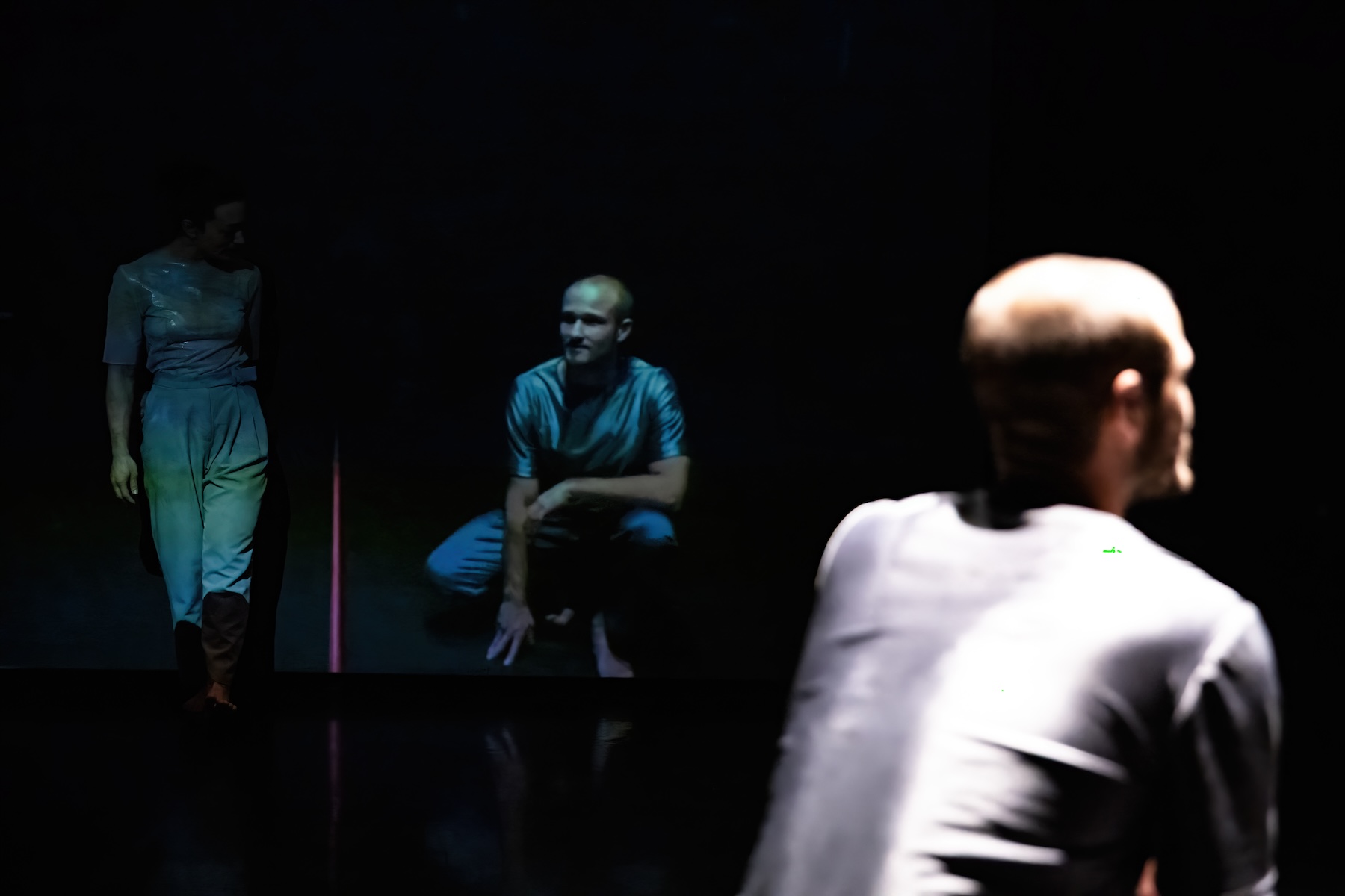 It is visually striking to follow the two in their movements while at the same time seeing the film images in the background. Through the clever play with distances, camera positions, and angles, thrilling scenes emerge again and again in the overall view.